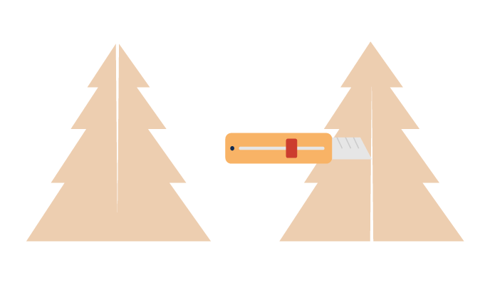 Usando le forbici, un coltello o un righello, taglia il cartone seguendo la forma dell'albero. Per ottenere un taglio fine, utilizzare lo strumento più preciso.