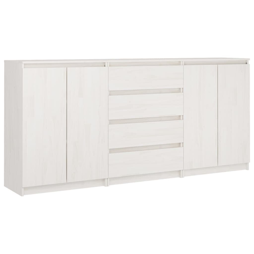 Queste credenze sono realizzate in legno massello di pino, che garantisce robustezza e durata. Caratterizzate da 2 armadi con 2 ante e 3 scomparti, 1 armadietto con 4 cassetti, offrono ampio spazio per tenere vari oggetti in modo organizzato e a portata di mano. Il robusto ripiano è ideale anche per esporre oggetti decorativi, cornici per foto o piante in vaso. Inoltre, questi mobiletti sono facili da pulire con un panno umido.