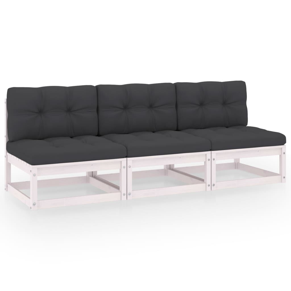 vidaXL Divano a 3 Posti con Cuscini Legno Massello di Pino