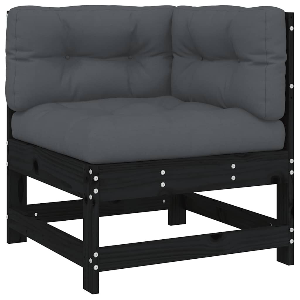 vidaXL Divano Angolare con Cuscini in Legno Massello di Pino Nero