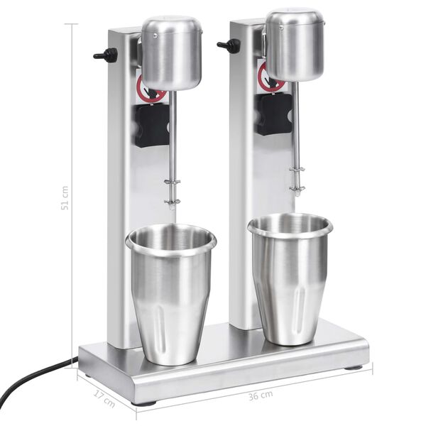 Questo frullatore, realizzato in acciaio inossidabile di alta qualità, colpisce per il suo design moderno ed elegante. È anche robusto e resistente. Ha due livelli di velocità per soddisfare le diverse esigenze di produzione alimentare. Il miscelatore è dotato di 2 tipi di coltelli. I coltelli piatti sono adatti per liquidi / sostanze più morbidi. I coltelli curvi sono adatti per la frutta, altri frutti più grandi / spessi o verdure. La macchina è dotata di due tazze in acciaio inossidabile. Ogni tazza ha una capacità di 1 litro. I piedini in gomma antiscivolo aumentano la stabilità del frullatore.