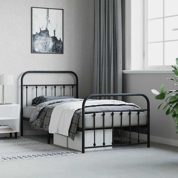 vidaXL Giroletto con Testiera e Pediera Metallo Nero 100x190 cm