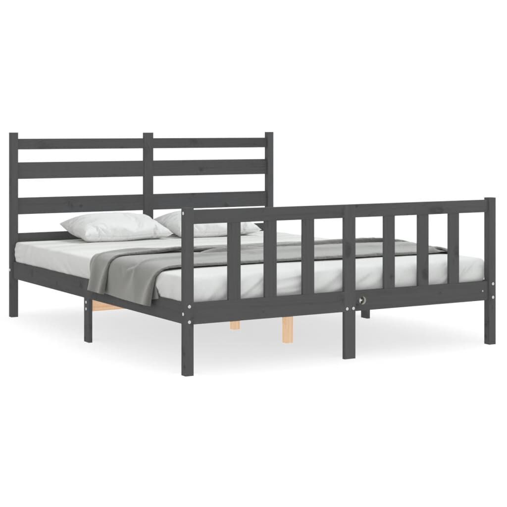 vidaXL Giroletto con Testiera Grigio King Size in Legno Massello