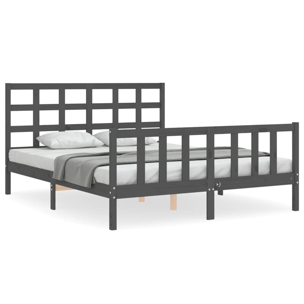 vidaXL Giroletto con Testiera Grigio King Size in Legno Massello