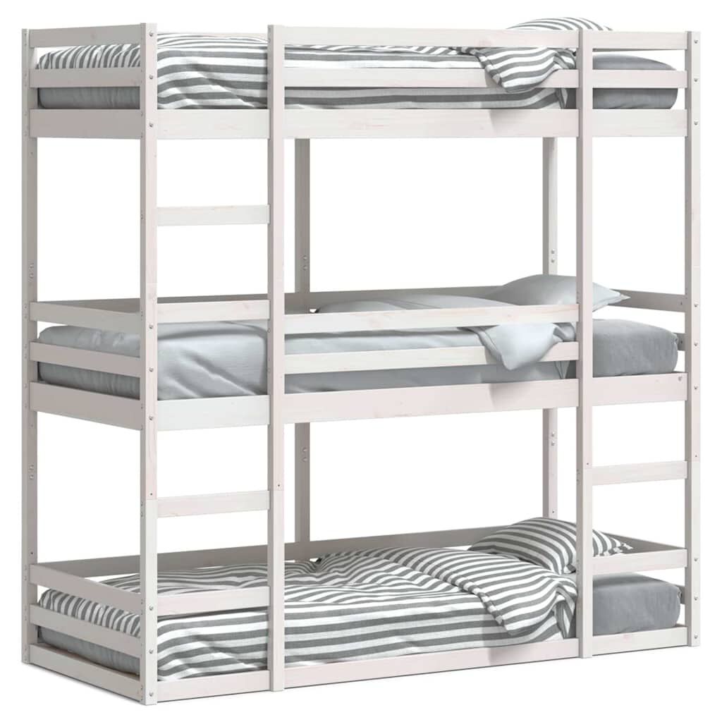 Questo letto a castello triplo in legno è elegante e funzionale, e rappresenta un complemento perfetto per qualsiasi stanza con uno spazio limitato.