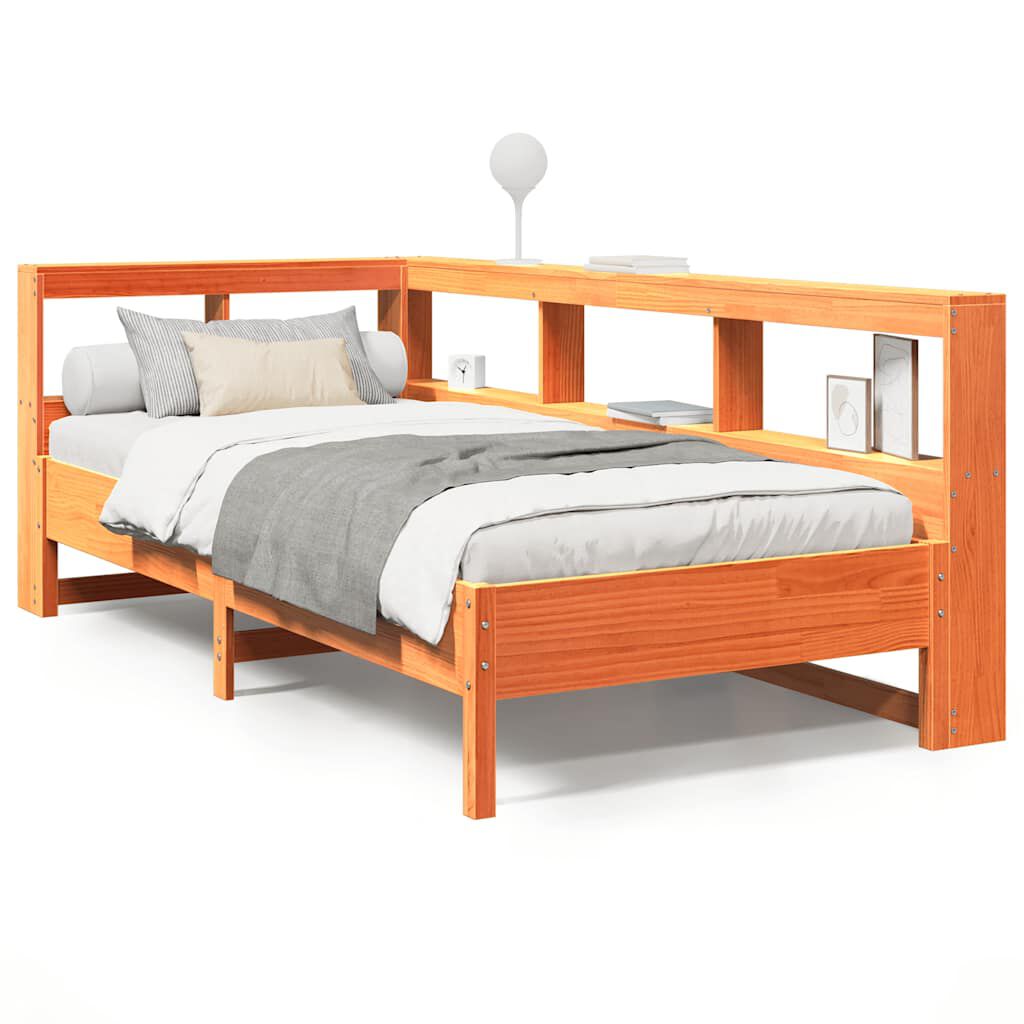vidaXL Letto Libreria senza Materasso Marrone Cera 90x200 cm in Pino