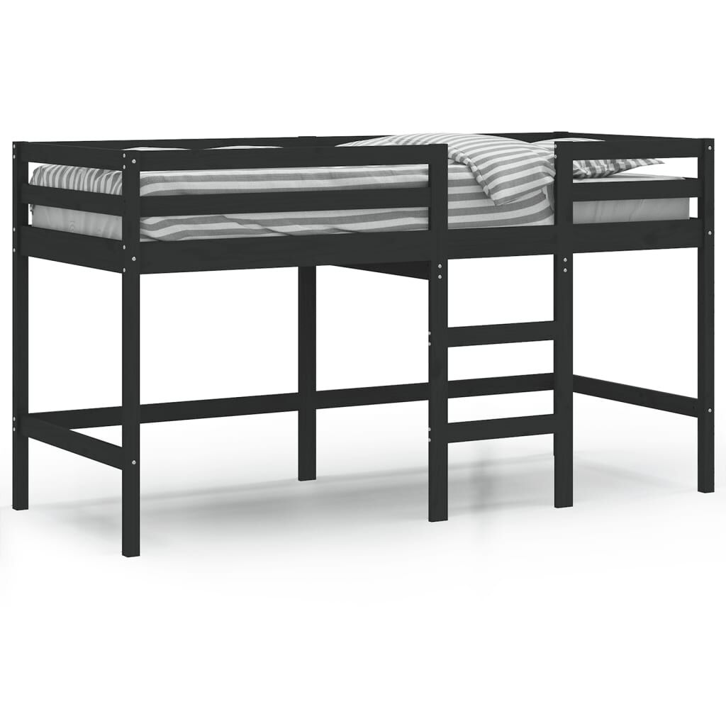 vidaXL Letto Soppalco con Scala Bambini Nero 90x200cm Massello Pino