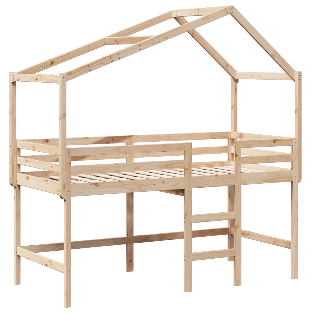 vidaXL Letto Soppalco con Scala e Tetto 80x200 cm Legno Massello Pino