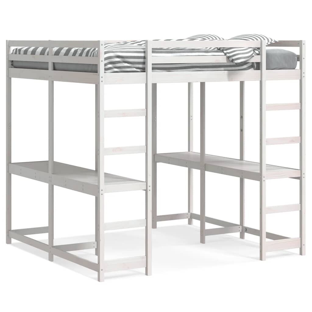 vidaXL Letto Soppalco Scrivania e Scala Bianco 140x200cm Massello Pino