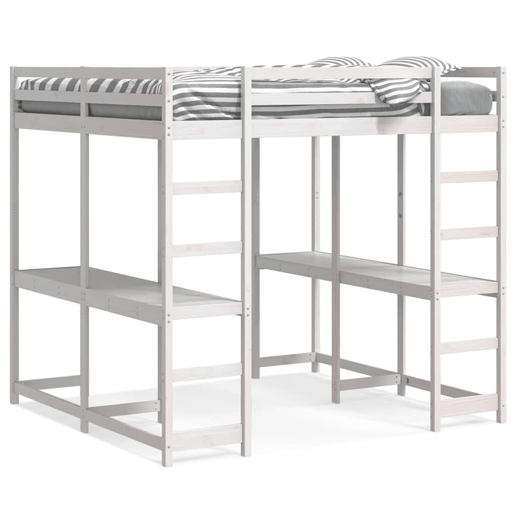 vidaXL Letto Soppalco Scrivania e Scala Bianco 180x200cm Massello Pino