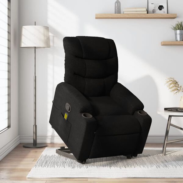 vidaXL Poltrona Alzapersona Massaggiante Reclinabile Nera in Tessuto