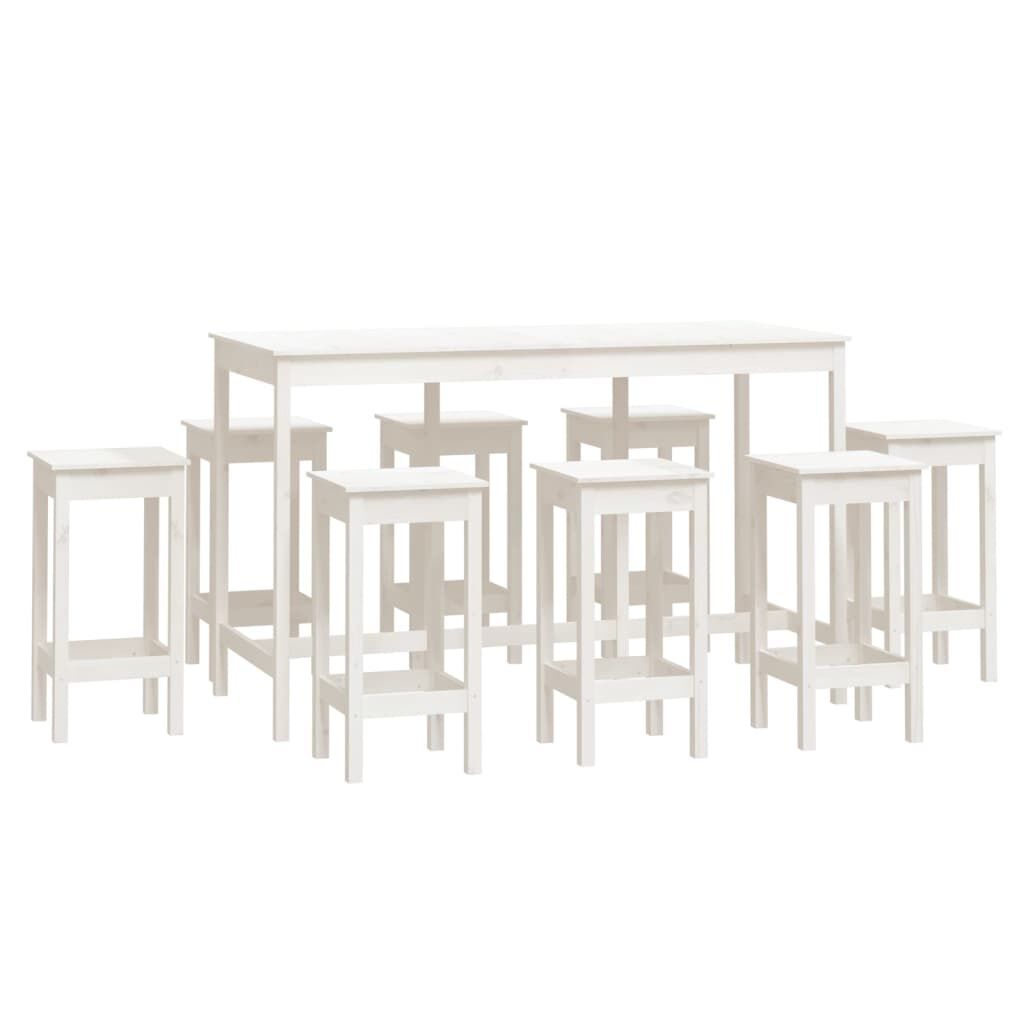 vidaXL Set da Bar 9 pz Bianco in Legno Massello di Pino