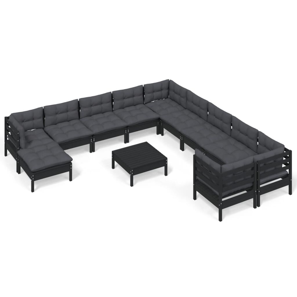 vidaXL Set Divani da Giardino 12 pz con Cuscini in Legno di Pino Nero