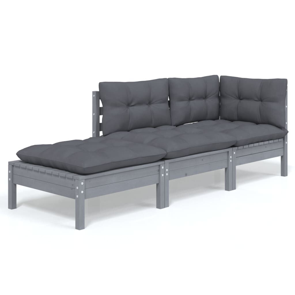 vidaXL Set Divani da Giardino 3 pz con Cuscini Legno Massello di Pino