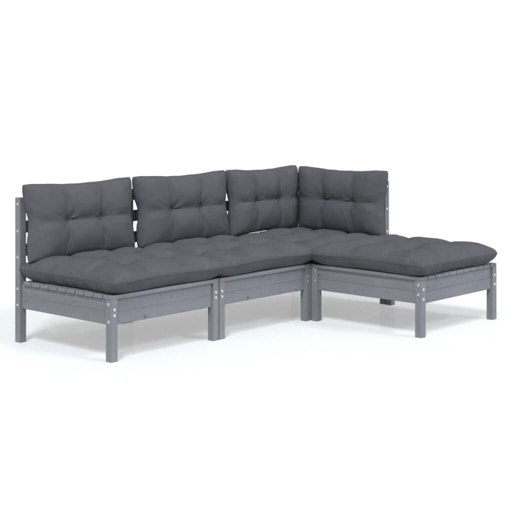vidaXL Set Divani da Giardino 4 pz con Cuscini Grigi Massello di Pino