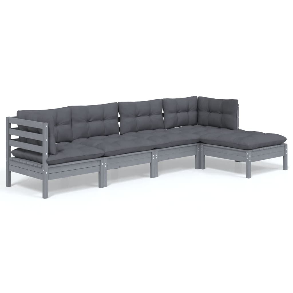 vidaXL Set Divani da Giardino 5 pz con Cuscini Grigi Massello di Pino