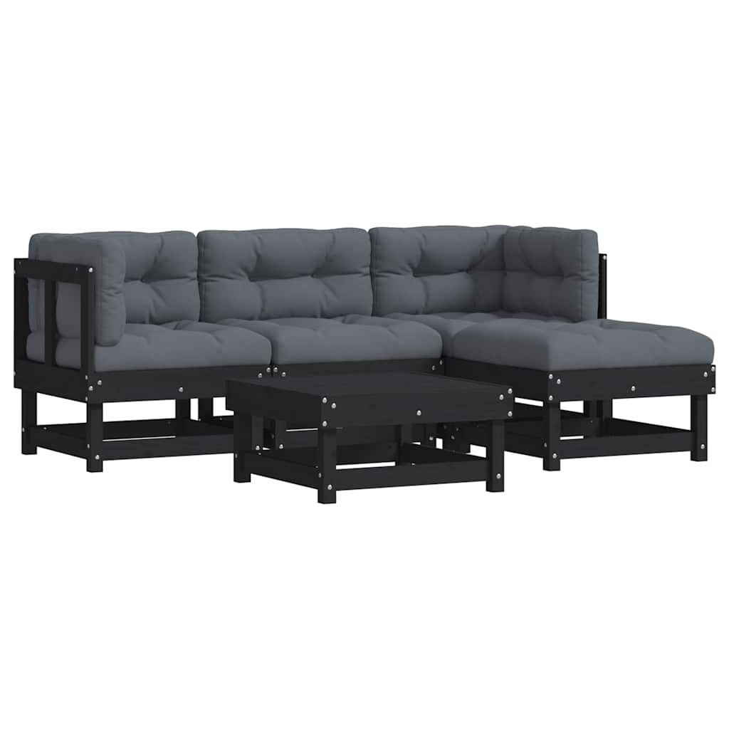 vidaXL Set Divani da Giardino 5 pz con Cuscini in Legno Massello Nero