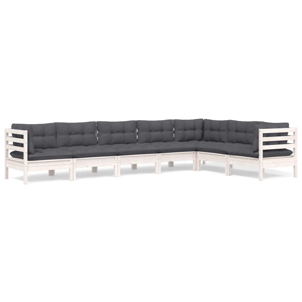 vidaXL Set Divani da Giardino 7 pz con Cuscini Bianchi Legno di Pino