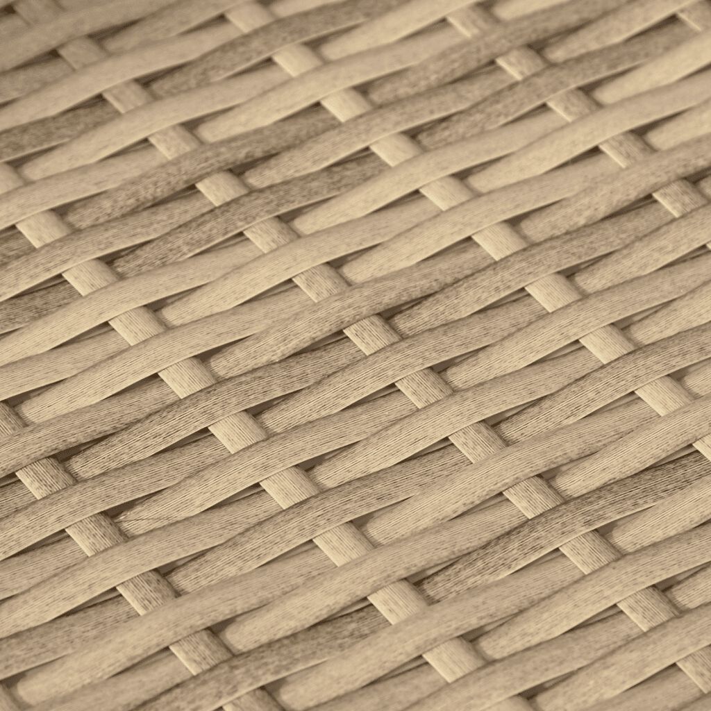 • Materiale resistente: Il rattan PE, noto anche come polyrattan, è un materiale sintetico resistente che richiede poca manutenzione e che assomiglia al rattan naturale. È leggero, facile da pulire e comunemente utilizzato per gli arredi da esterno grazie alla sua durata e alle sue proprietà di resistenza agli agenti atmosferici.