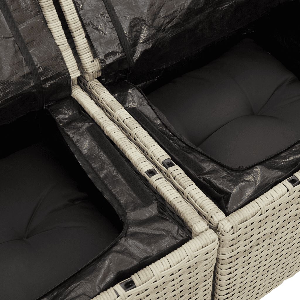• Funzione di conservazione con custodia resistente all'acqua: Ciascuna seduta da giardino presenta uno spazio di conservazione per riporre cuscini, giocattoli, e altri oggetti sotto la seduta, con una custodia resistente all'acqua. Le custodie interne hanno un rivestimento superiore e possono essere fissate saldamente alle sedute con le chiusure a strappo per una maggiore stabilità.