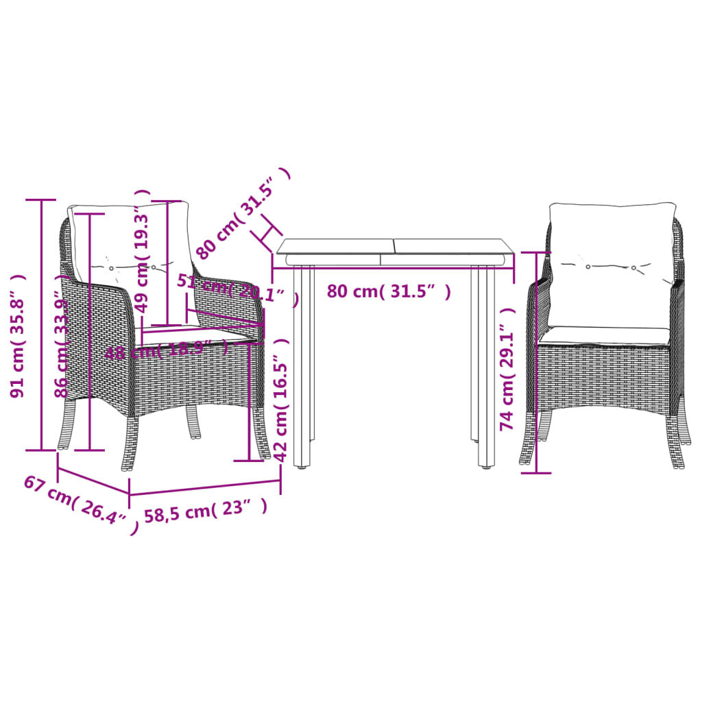 vidaXL Set Pranzo da Giardino 3pz con Cuscini Grigio Chiaro Polyrattan