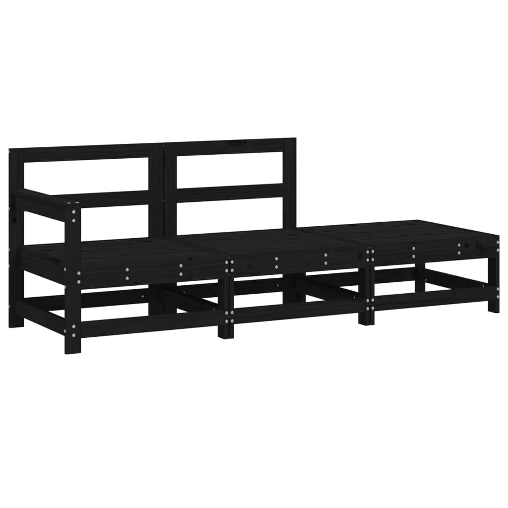 vidaXL Set Salotto da Giardino 3 pz Nero in Legno Massello di Pino