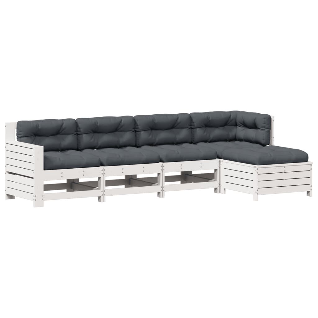 vidaXL Set Salotto Giardino 5pz con Cuscini Bianco Legno Massello Pino