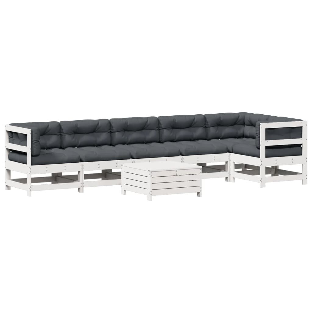 vidaXL Set Salotto Giardino 7pz con Cuscini Bianco Legno Massello Pino
