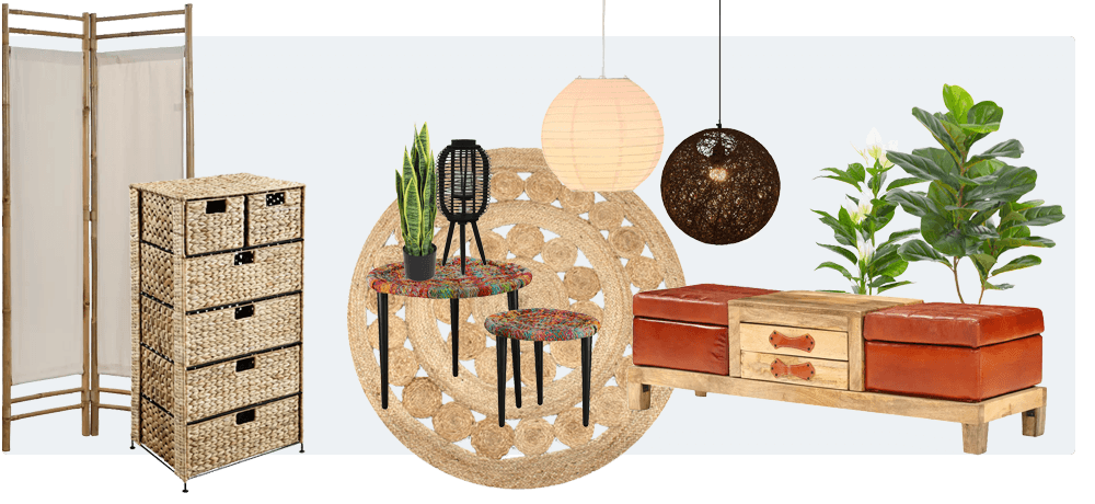 Non ci sono due interni bohémien che sembrano esattamente uguali. Questo è lo stile perfetto se vuoi creare qualcosa di unico. I mobili Boho sono realizzati con materiali naturali come rattan, bambù, vimini, juta, sisal e legno riciclato. Questo stile ti consente di rivivere i luoghi in cui hai viaggiato osservando questi accessori in un bel mobile o su un tavolino.