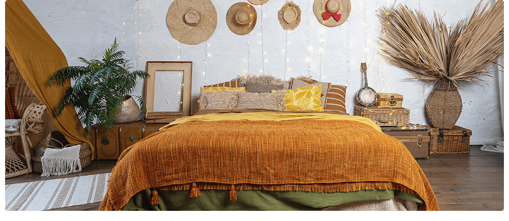 In un interno bohémien ti sembrerà di essere in vacanza stando a casa tua. Questo stile di interior design è pieno di colori vivaci, materiali naturali, trame e motivi audaci. È anche lo stile ideale per aggiungere tutti gli oggetti che hai raccolto durante i tuoi viaggi. Se vuoi scatenare la tua creatività: bohémien è lo stile degli interni che fa per te!