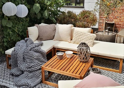 Lascia che il tuo giardino danzi di colore, brillantezza e pace. Scopri i nostri tappeti vivaci, i cuscini strutturati e le luci scintillanti!
